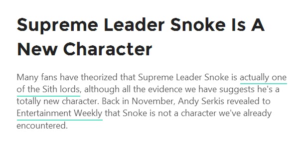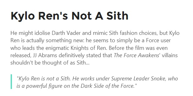 De fato, essa fala ("você deve cumprir o seu destino") é bem confusa, mas, como já discutimos várias vezes neste post, o fato de o lado negro ser forte na Rey não significa que ela seja uma Palpatine, pode ser que o lado negro seja simplesmente mais forte nos que são mais poderosos com a Força........e uma vez que a Rey é especialmente poderosa, o lado negro é bem mais intenso nela do que em qualquer outro usuário da Força, inclusive nos que são poderosos com a Força, como o Luke e o Kylo Ren.